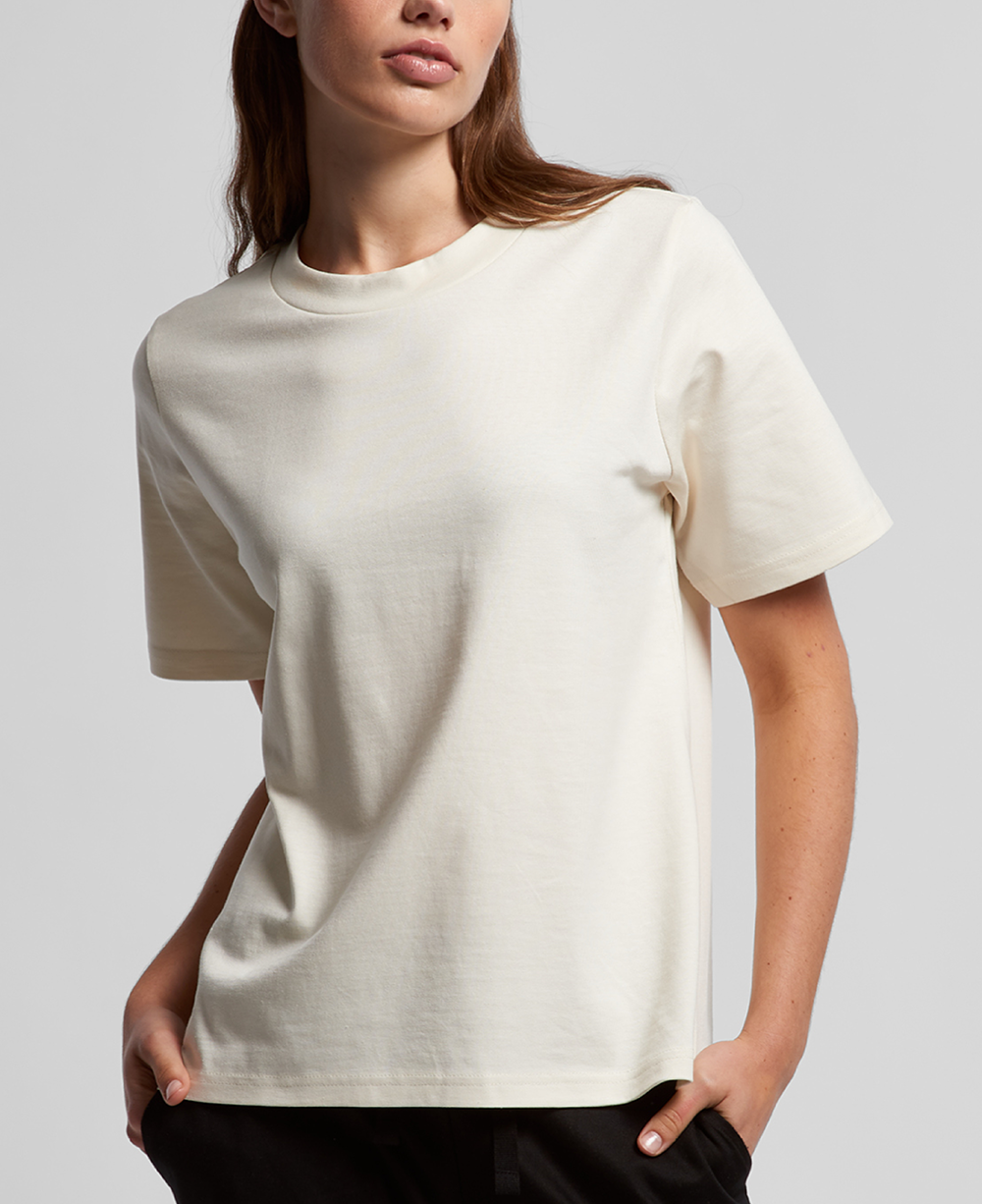 This women’s heavyweight tee is built to last, crafted from 8.2 oz 100% carded cotton for a substantial feel and premium quality. It features a boxy, oversized fit with dropped shoulders and wide neck ribbing, blending style with ease of wear. Side seams and shoulder-to-shoulder tape reinforce its structure, while double-needle hems add durability. This tee combines street-ready appeal with comfort and resilience, making it a versatile wardrobe essential