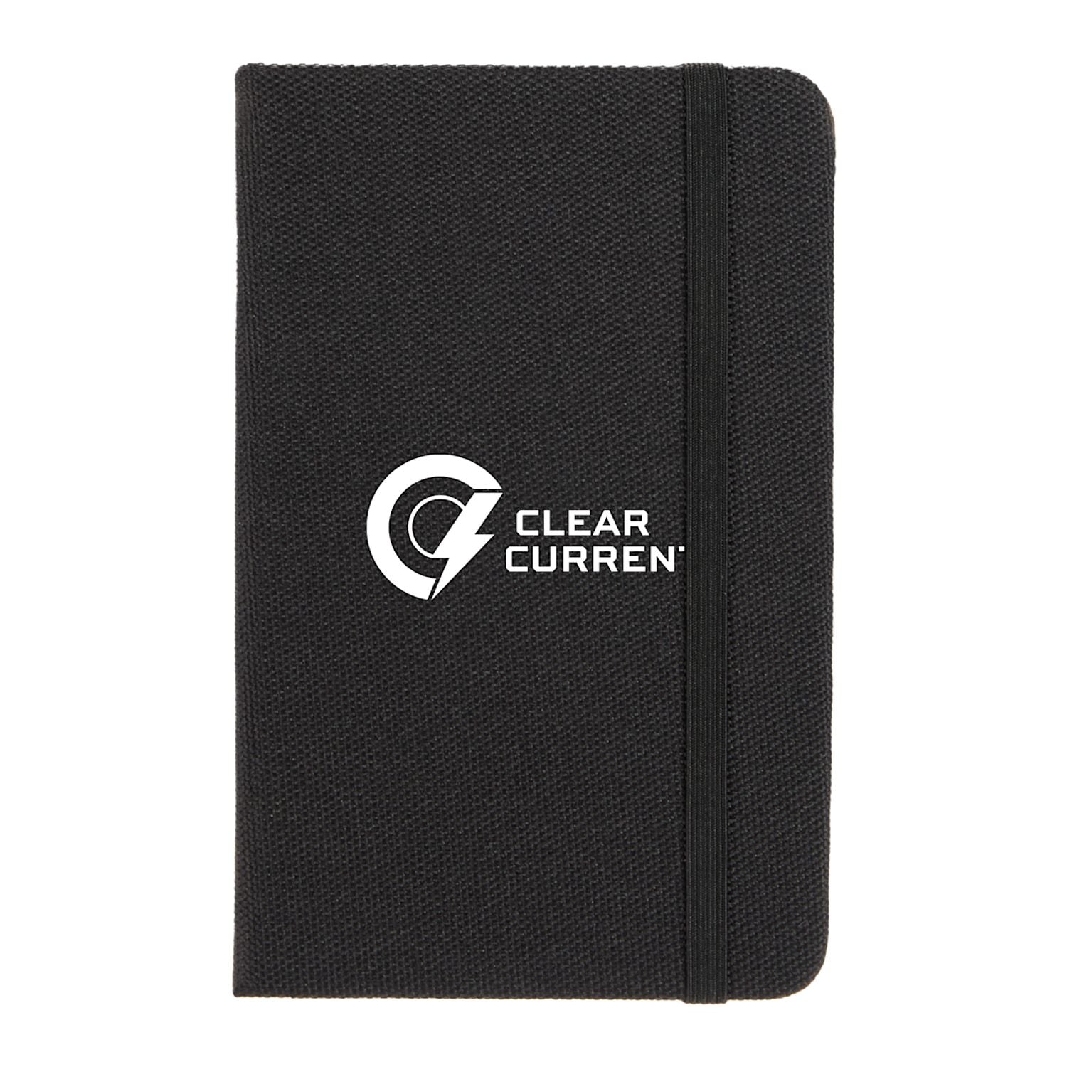 The 3.5" x 5.5" Recycled PET Pocket Bound Journal is a compact and eco-friendly solution for note-taking on the go. Featuring a durable, hardbound cover made from 100% recycled PET, this journal includes 80 sheets of recycled, lined, and perforated pages for easy tear-out. A color-matching ribbon page marker and elastic closure keep your notes secure and organized. By choosing this notebook, you’re making a positive impact on the environment through a partnership with 1% For The Planet, as a portion of each sale supports environmental nonprofits.