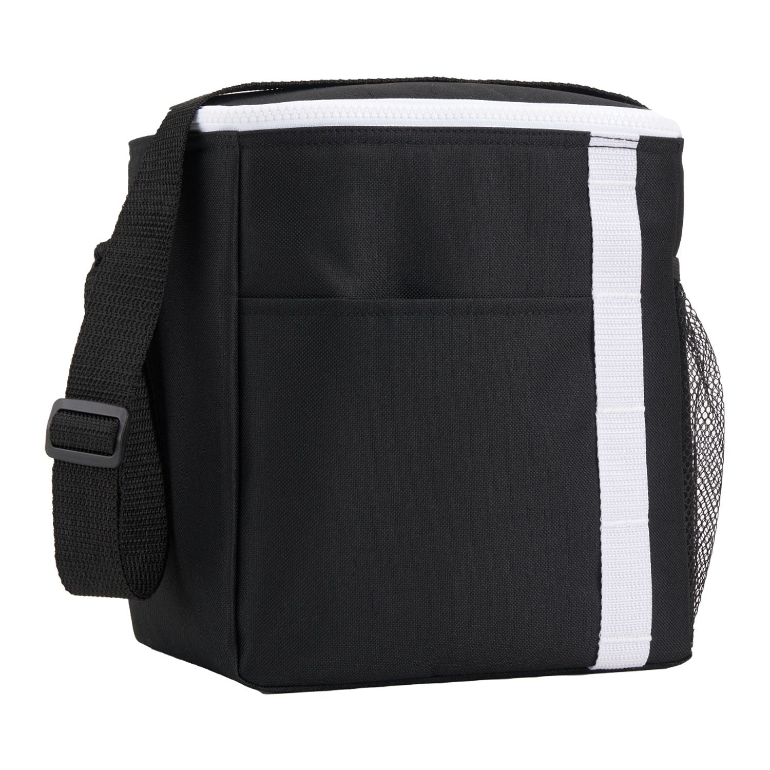 The Accent 12 Can Lunch Cooler is great for on the go! Holding up to 12 cans this cooler is easy to carry with adjustable straps. Featuring loops for pens or other accessories. This cooler is made with recycled materials, helping keep your good cool while helping the Earth! 1% for the Planet.