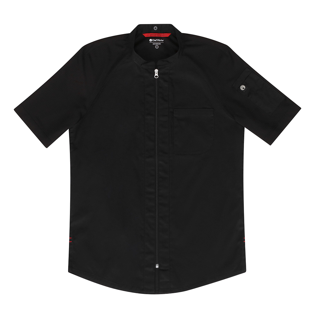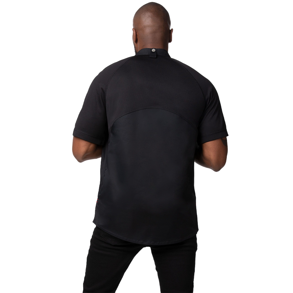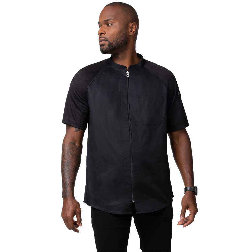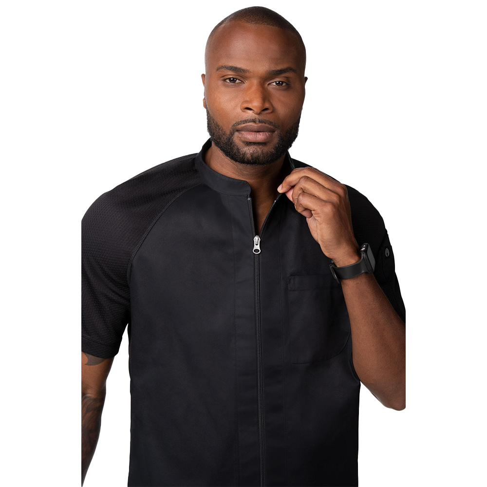 The Arcadia Chef Coat bends the rules of the traditional chef coat and encourages freedom of movement, creativity, and purpose. This chef coat is environmentally friendly with it's recycled, stretch, Cool Vent™ mesh fabric allowing your reach to have no bounds. Enjoy a modern fit with minimalistic design, empowering you to steer your own destiny.