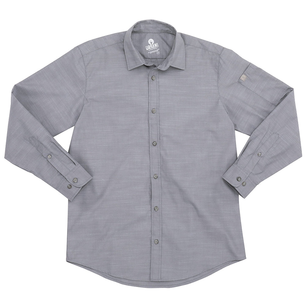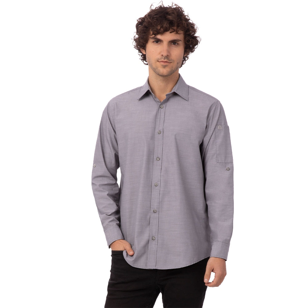 The Men’s Chambray Shirt has got some serious edge to it. Loaded with the details that servers and bartenders love, it’s also built tough so back-of-the-house staff could throw on an apron, roll up their sleeves and get to work.