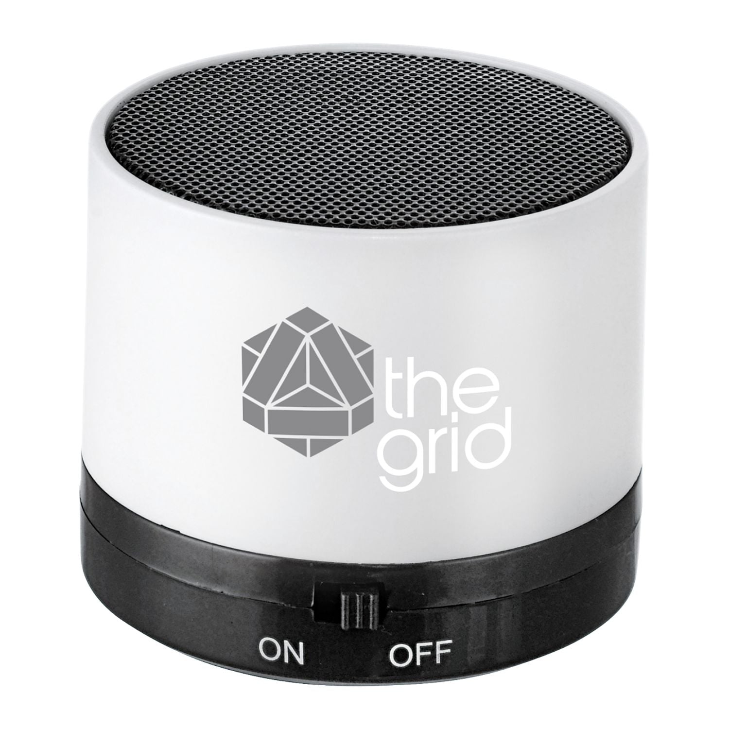 With a lightweight plastic design and internal rechargeable battery, the Cylinder Bluetooth Speaker provides up to 1.5 hours of playback time when fully charged. It charges in just one hour using the included Micro USB cable. The speaker has a powerful 3W output and a Bluetooth working range of 33 feet (10 meters). Comes packaged in a FSC®-certified premium gift box.