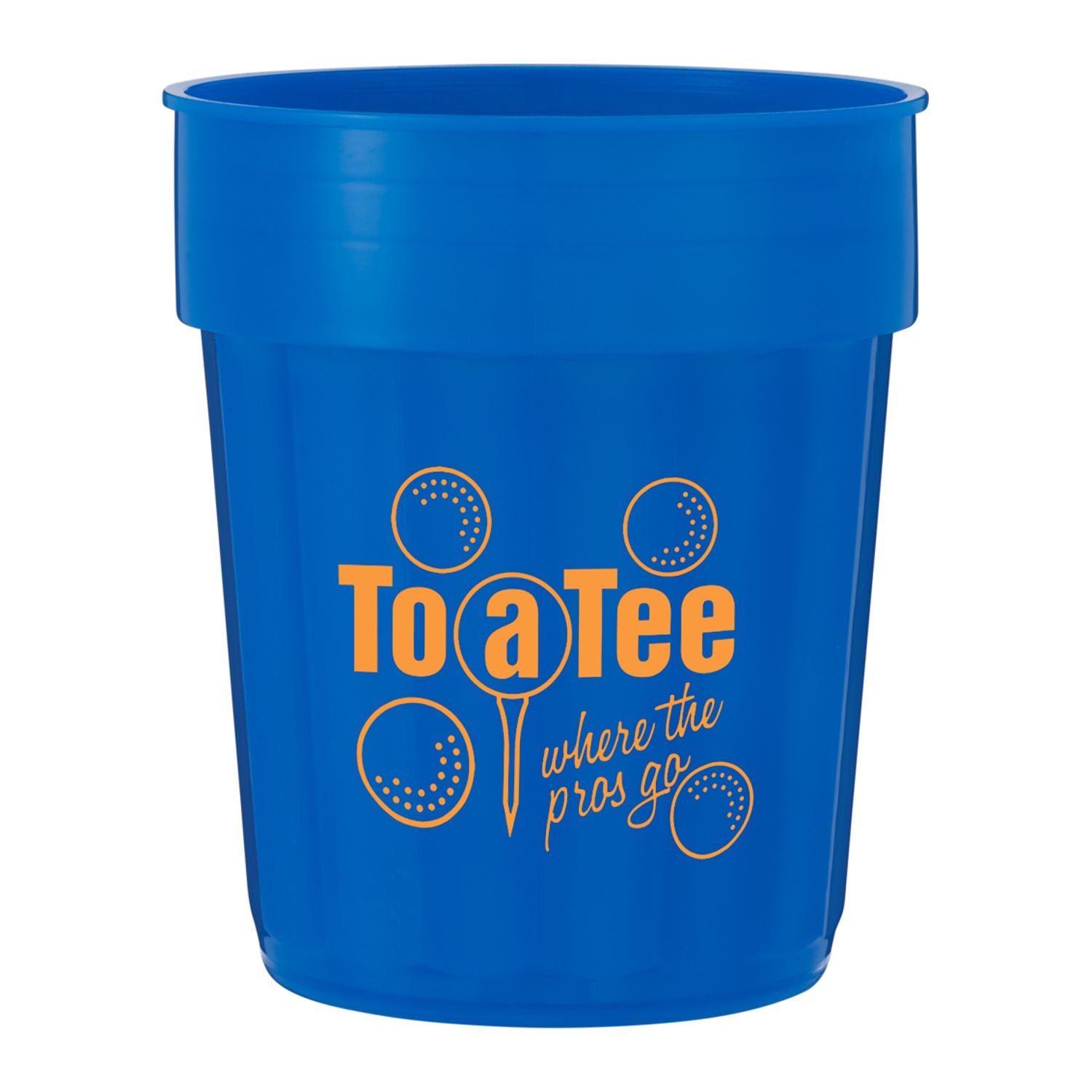 The Fluted Stadium Cup is a reusable cup that holds 16 ounces of your favorite beverage. Its fluted sides and stackable design save space on the giveaway table and in the kitchen. This cup is a great souvenir that will be used over and over, and loved for years to come. The 16oz Fluted Stadium Cup is BPA-free. Hand wash only. Made with 25% recycled polypropylene material.