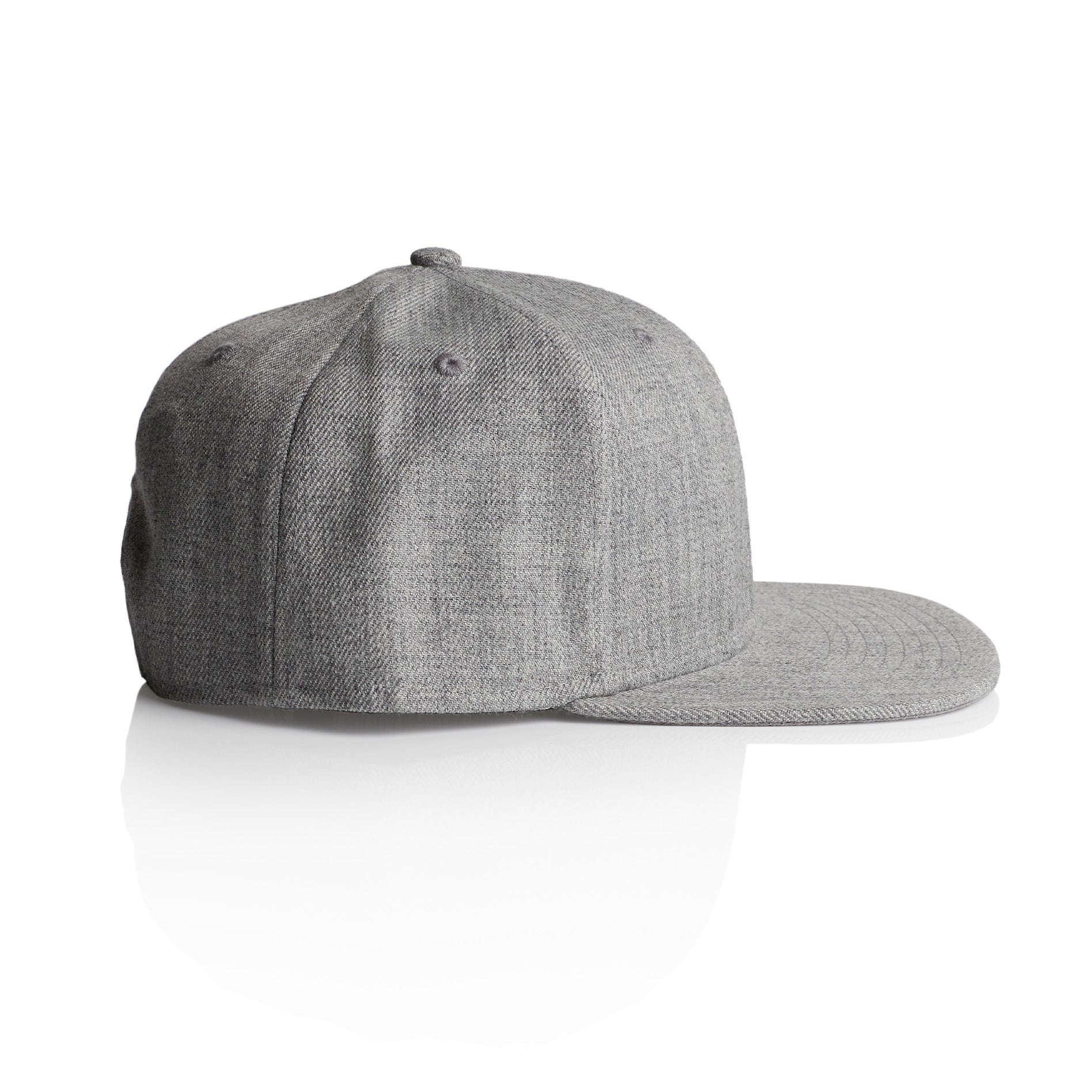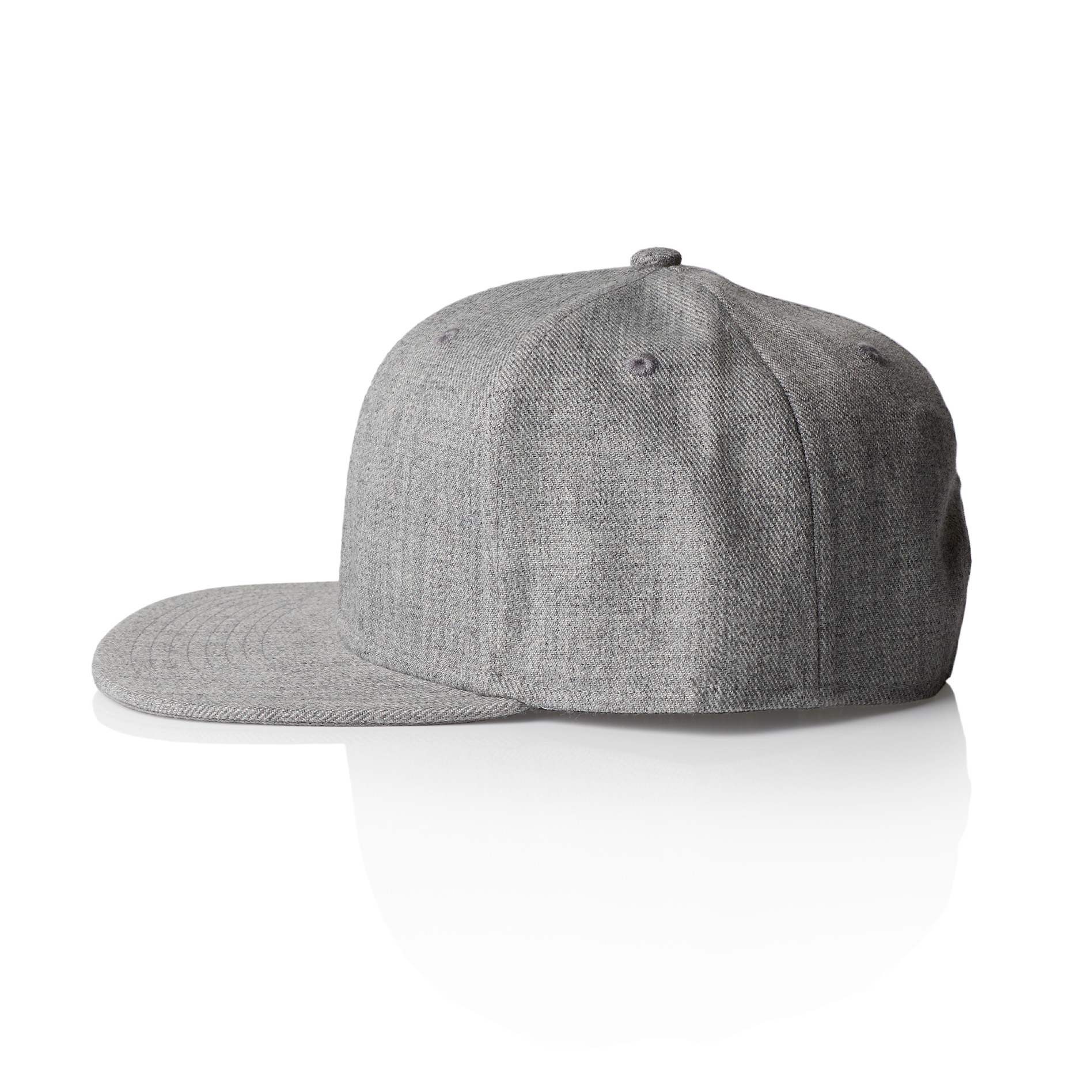 Plastic snapback, light grey under-peak lining, stitching eyelets, self fabric dome at top