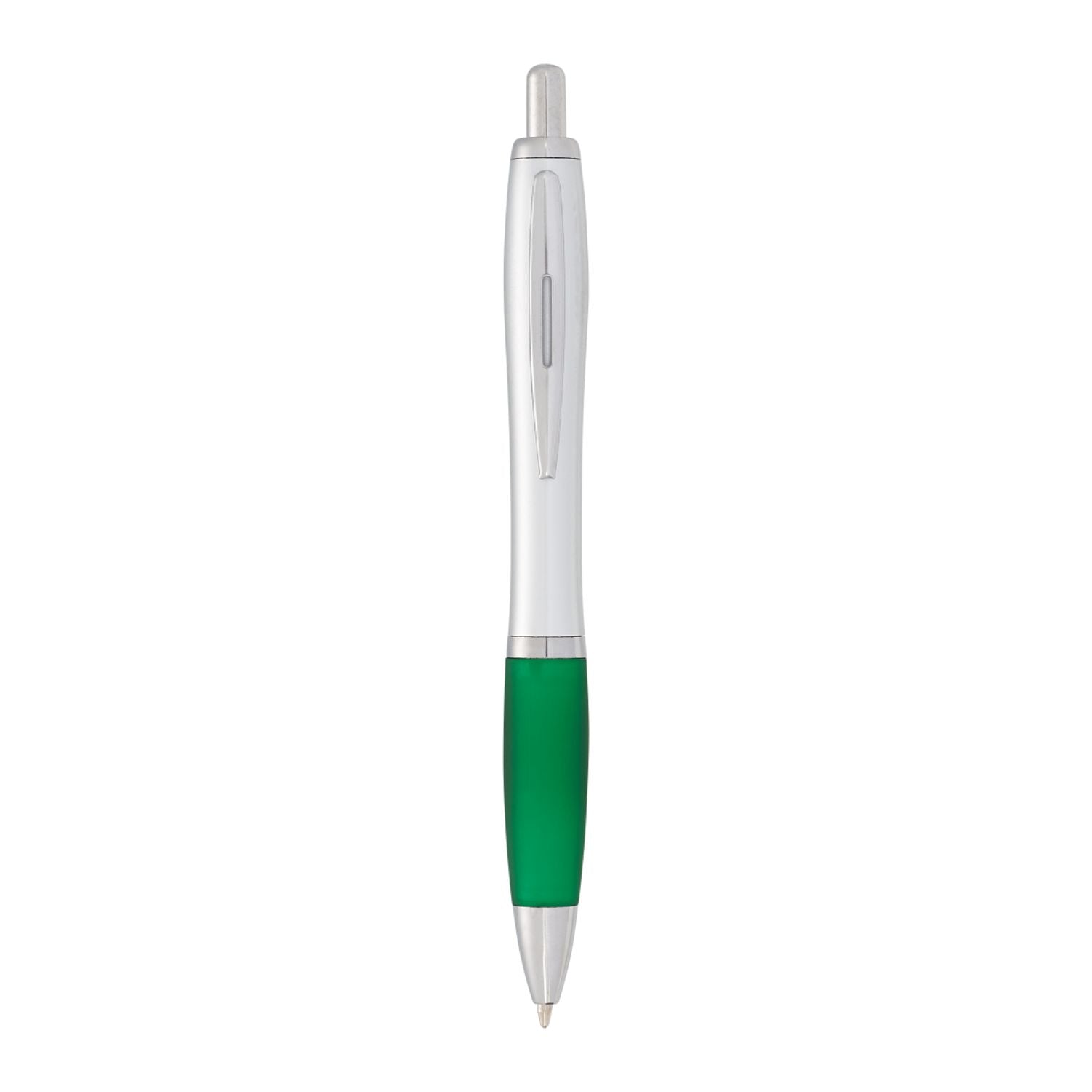 Nash Retractable Ballpoint Pen - Silver Barrel w/Green Grip