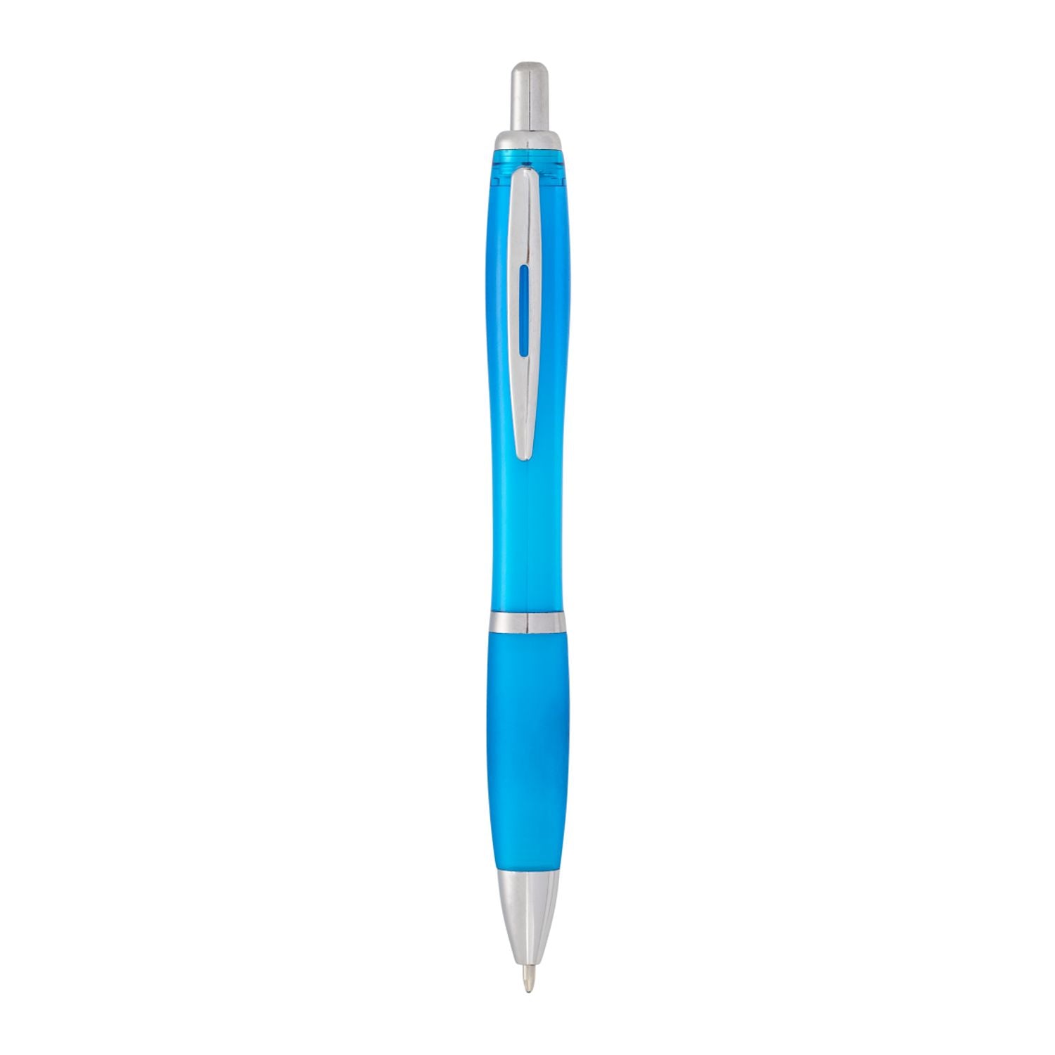 The Nash Ballpoint Pen features a click-action retractable ballpoint with a black ink cartridge. The barrel features a comfortable soft grip, available in multiple colors. Soft grip not compatible with solid silver.