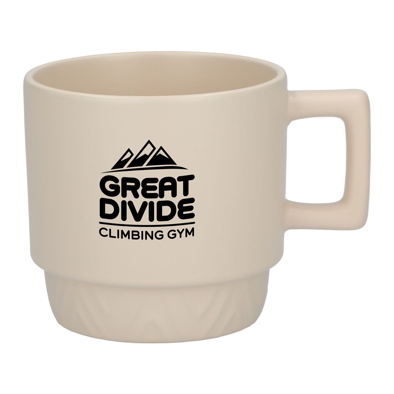 Sophisticated and stackable, our Paco 12oz Ceramic Mug features a beautiful matte glaze throughout the vessel for an elevated look and cozy feel. Raised herringbone design along the base gives you subtle pattern. Wide surface area at the top of the mug for you to enjoy your hot beverage. Hand Wash Only. 12oz. Laser not available on cream.