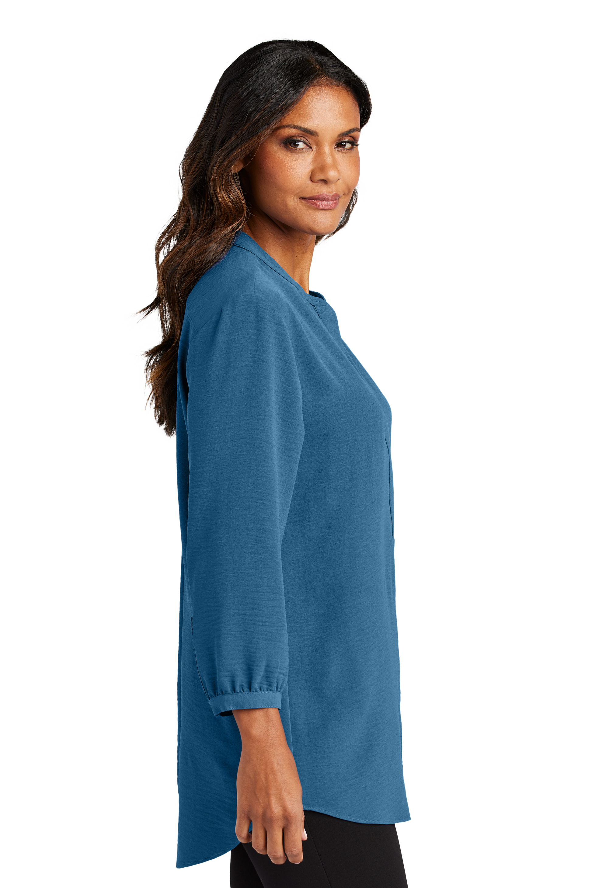Port Authority® Women's 3/4-Sleeve Textured Crepe Tunic - Aegean Blue