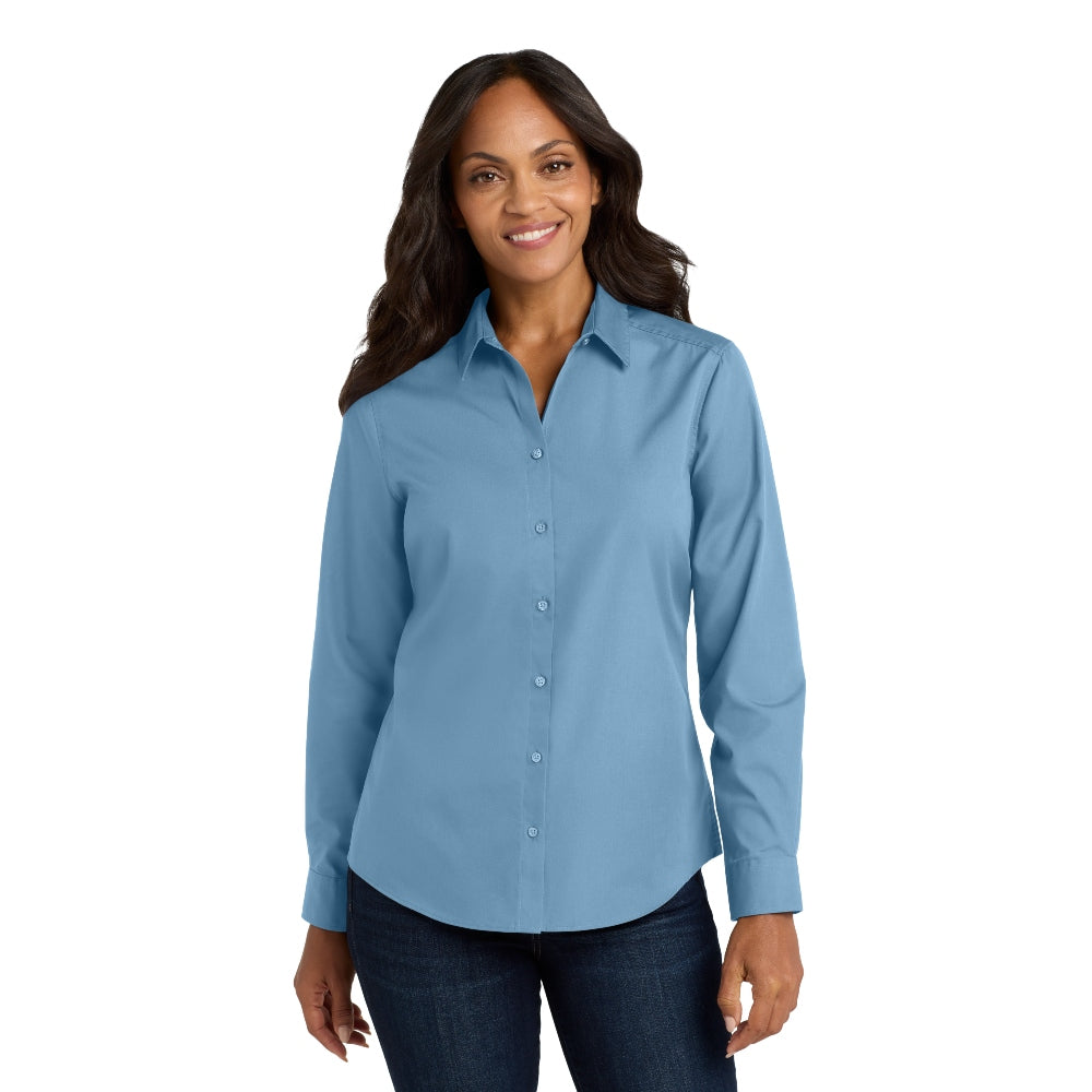 Port Authority® Women's Long Sleeve Carefree Poplin Shirt - Carolina Blue