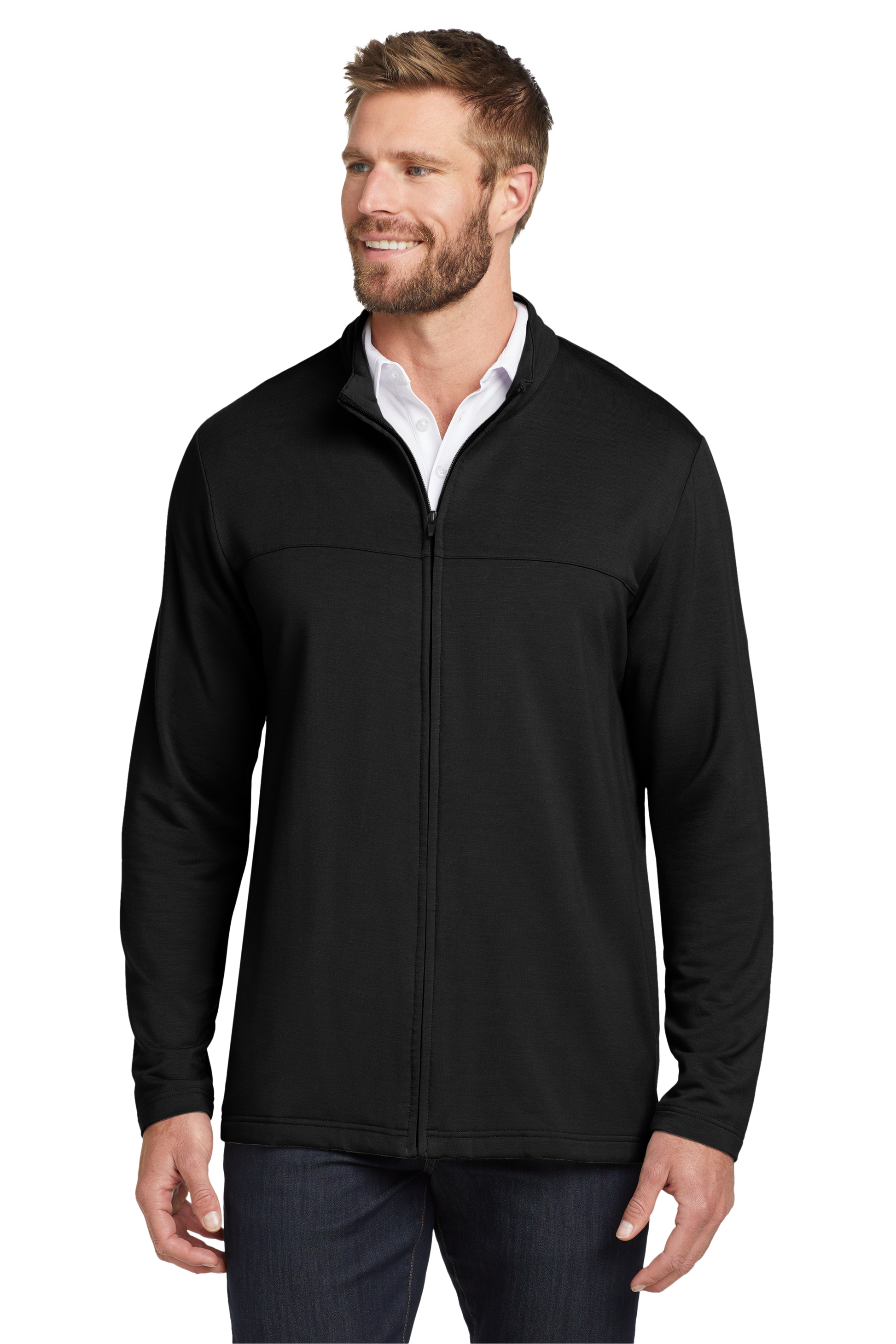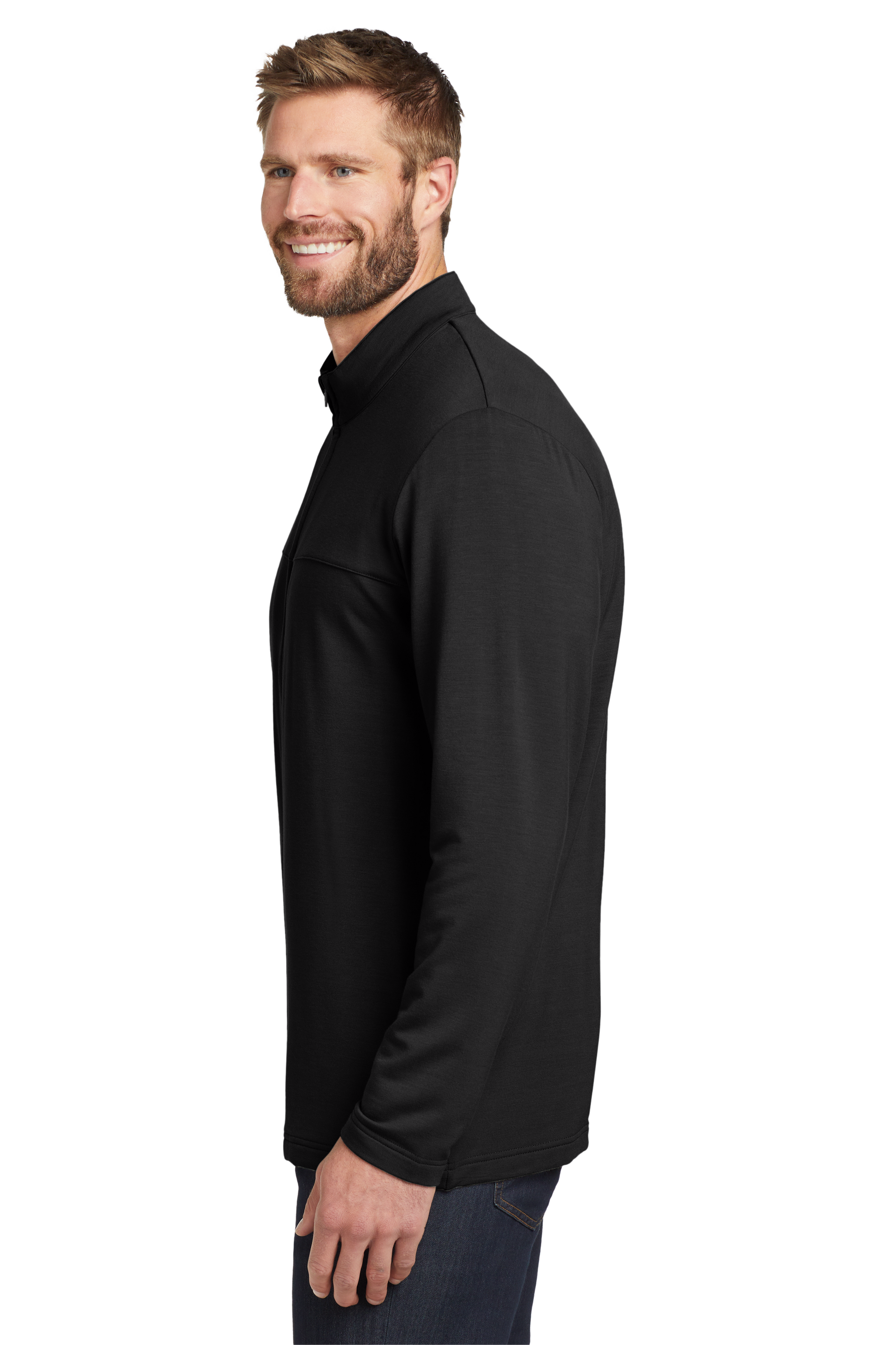 With an authentic outdoorsy lodge look, this refined sweater fleece delivers serious comfort. Smooth-faced and brushed-back for warmth, this anti-pill style also has stretch for easy movement. Woven fabric details add sophistication.