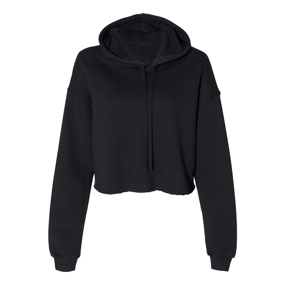 This trendy womens cropped hoodie sweatshirt is a must-have for your fall wardrobe. Its raw edge and dyed to match drawstrings make it fashion forward while the poly cotton brushed fleece brings an unmatched level of comfort.